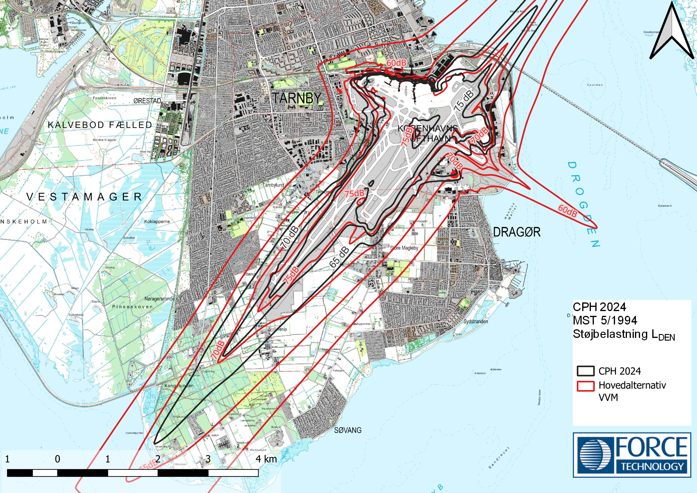 FORCE Technology har foretaget LDEN beregningerne med rapporten ”CPH - beregning af flystøjbelastning i 2024”, DANAK-nr. 100/3207, se den her.
