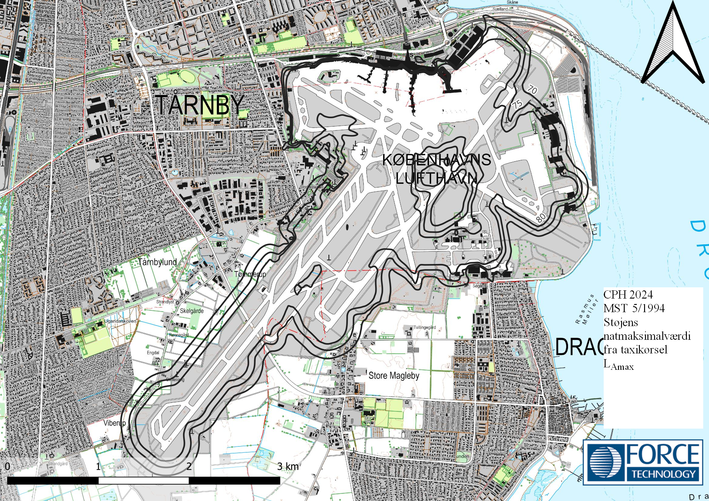 FORCE Technology har foretaget taxistøjberegningerne med rapporten ”CPH - Beregning af flystøjbelastning i 2024”, der også indeholder støjkortlægningen af flytrafikken i 2024, DANAK-nr. 100/3207. Se rapporten her.